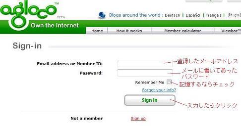 ③認証メールが届いたらhttp://www.agloco.com/web/guest/signinをクリック。