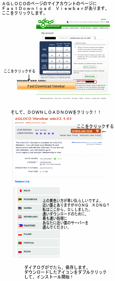 1. Aglocoにログインすると、Fast Download Viewbarというオレンジの部分があるので、